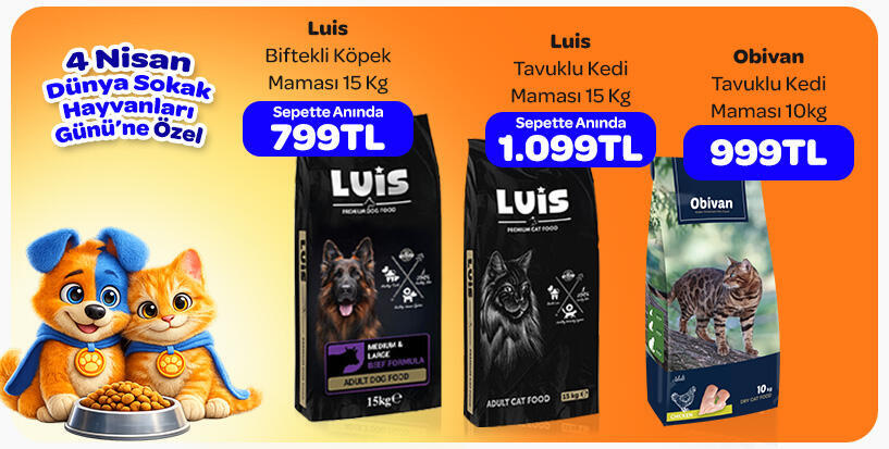 “Besle, Mutlu Et” mottosu ile sokak hayvanlarını beslemek için sizde Luis Kedi ve Köpek mamalarına Markamama.com.tr’den sipariş verebilirsiniz.