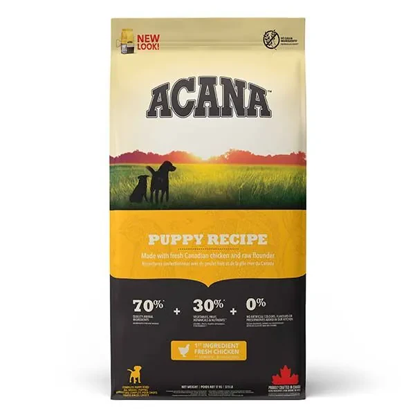 Doğal yavru köpek beslenme koşullarına eşdeğer bir düzeyde bulunabilmesi için protein düzeyinin zengin ve düşük oranda karbonhidrat içermesi gerekmektedir. Bu özellikleri içerisinde barındıran Acana Yavru Köpek Maması sindirim bozukluklarına karşı köpeğinizin tam olarak koruyucusu olacaktır. Sindirim problemleri yaşatan mamaların içerisinde genellikle mısır ürünleri bulunmaktadır. Bu da köpeklerinizin bazılarına hiç dokunmadıgı gibi bazılarına ise zarar verebiliyor. Bu sebeplerden dolayı Acana yavru köpeğiniz için tam olarak idealdir ve içerisinde bölgesel meyve ve sebzeleri barındırmaktadır. Yavru köpeğinizin midesi için birebir mamadır. Deneyip faydasını gördükten sonra okuduğunuz bu satırlara kesinlikle hak vereceksiniz. Acana Orijenle beraber dünya standartlarının en üstünde formülde olan mamadır. Üretimi üzerinden hiç güneş eksik olmayan Kanada'nın Alberta eyaletinde yapılmaktadır. Acana ve Orijenin üretim tesisleri aynı zamanda ödüllü tesislerdir. Acana Yavru Köpek Maması minik yavruların hem sağlıklı hem de güçlü olabilmesi için doğal oldugu kadar oldukca da lezzetli bir seçimdir. Ürünün İçeriği: Tavuk eti,yulaf,kemikleri alınmış tavuk,bütün patates,bezelye,tavuk yağı,taze bütün yumurta,kılçıksız dil balığı,güneşte kurutulmuş kaba yonca,tavuk karaciğeri,ringa balığı yağı,bezelye lifi,bütün elma,bütün armut,tatlı patates,bal kabağı,kabak,yaban havucu,havuç,ıspanak,kızılcık,yaban mersini,yosun,hindiba kökü,ardıç meyvesi,melekotu kökü,kadife çiçeği,tatlı rezene,nane yaprağı,lavanta,yüksek kaliteli vitamin ve mineraller Ürün Analizi: Ham Protein 32,00, Ham Yag 19,00, Ham Lif 4,00, Nem 10,00, Kalsiyum 1,70, Fosfor 1,10, Omega 6 2,50, Omega 3 0,90, DHA/EPA 0,40 - 0,40, Glukozamin 1400 mg/kg, Kondroitin Sülfat 900 mg/kg, Metabolik Enerji 3676 kcal/kg