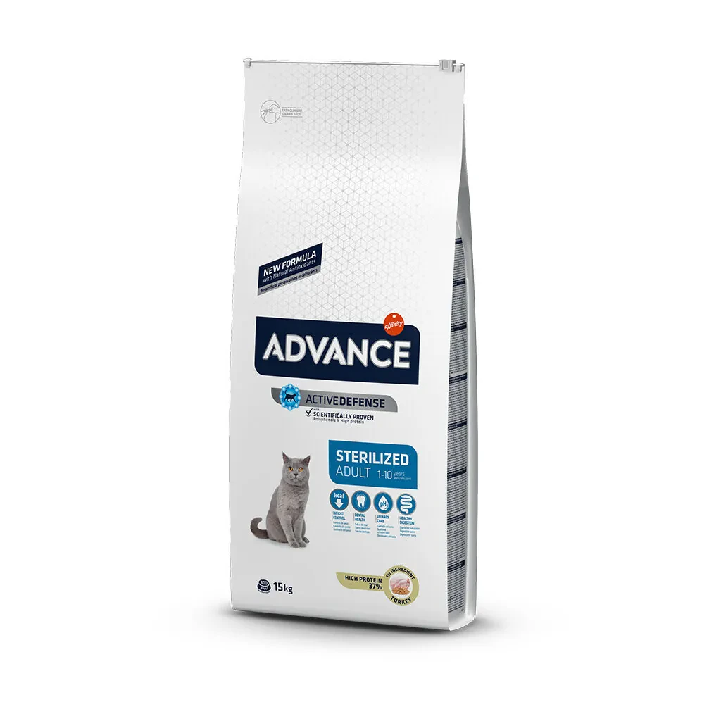 Advance Hindili Kısırlaştırılmış Kedi Maması 15 kg, kısırlaştırılmış kedilerin özel beslenme ihtiyaçlarını karşılamak için formüle edilmiştir. İçeriğindeki yüksek kaliteli hindi proteini, dengeli yağ oranı ve vitamin-mineral desteği ile kedinizin sağlıklı bir metabolizmaya sahip olmasına yardımcı olur. Sindirimi kolay yapısı sayesinde hassas kediler için de güvenle tercih edilebilir.