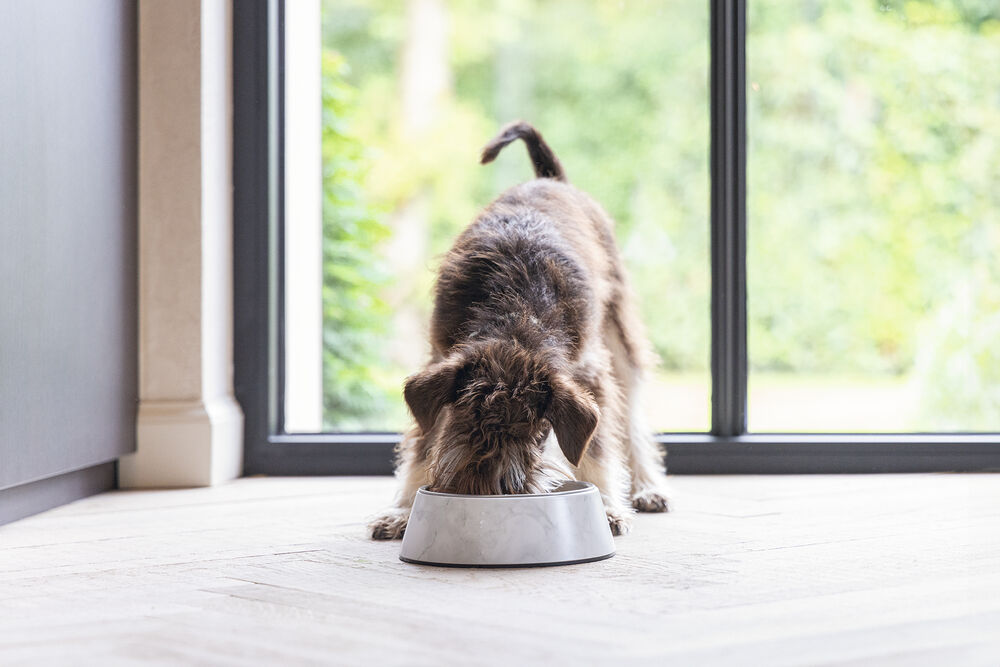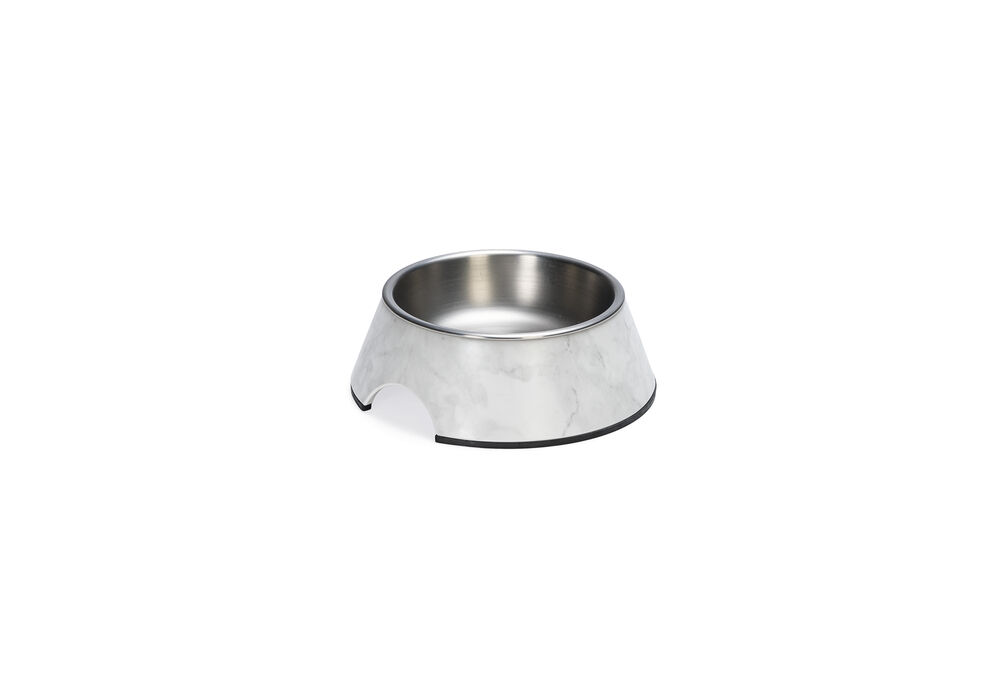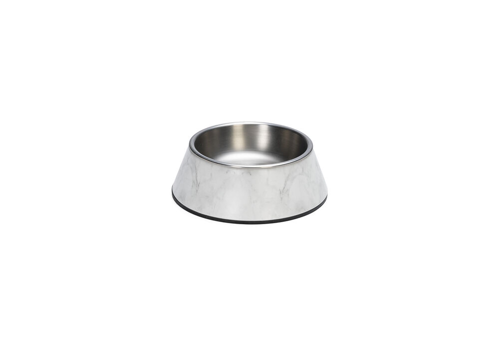 Beeztees DBL Köpek Mama Su Kabı, Mat Paslanmaz Çelik, Beyaz Mermer Görünümlü, 14cm, 160ml