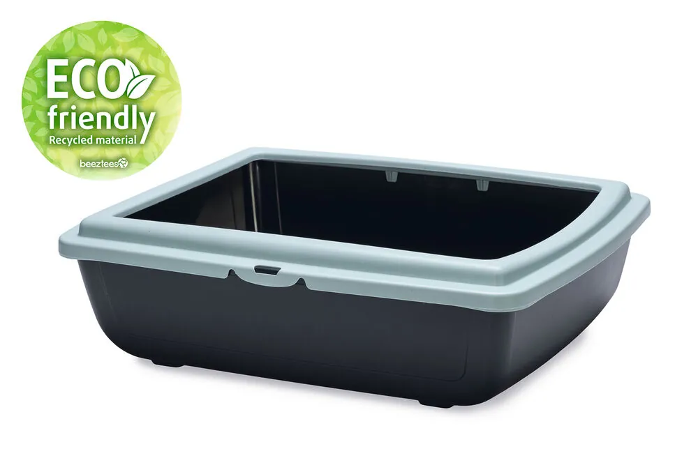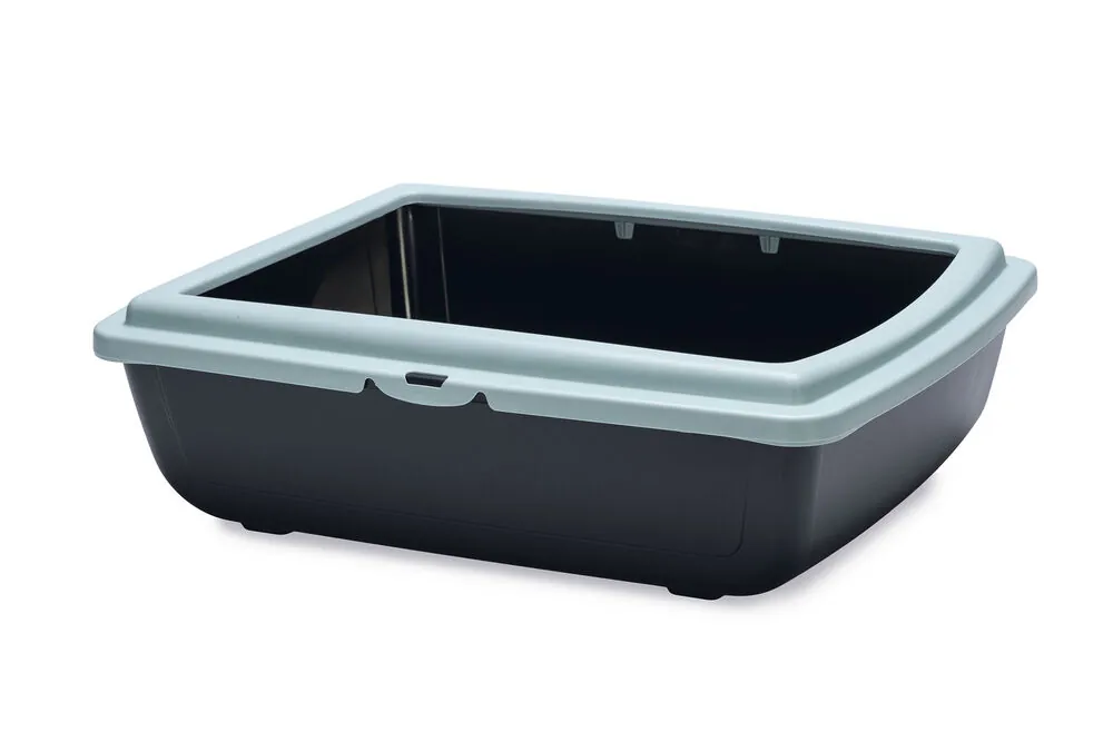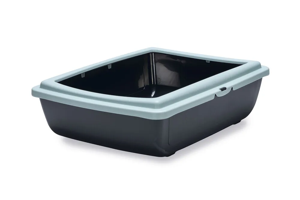 Beeztees Kalın Kenarlı Açık Kedi Tuvaleti, Açık Mavi Antrasit, 48x38x14cm