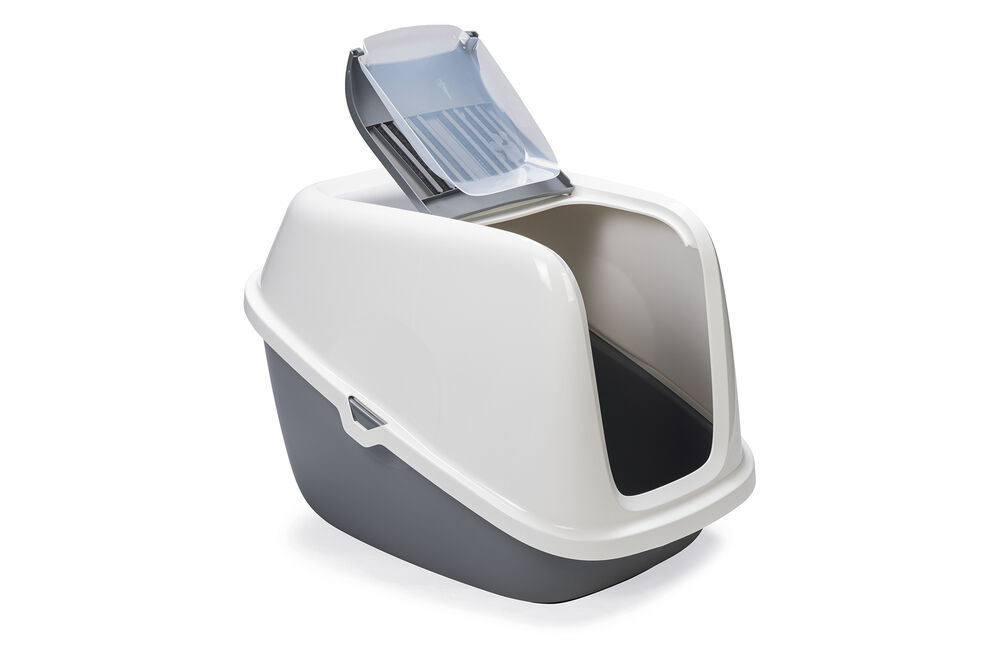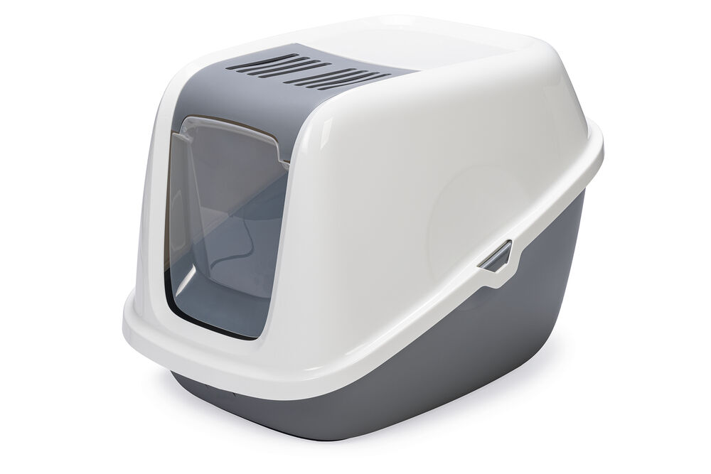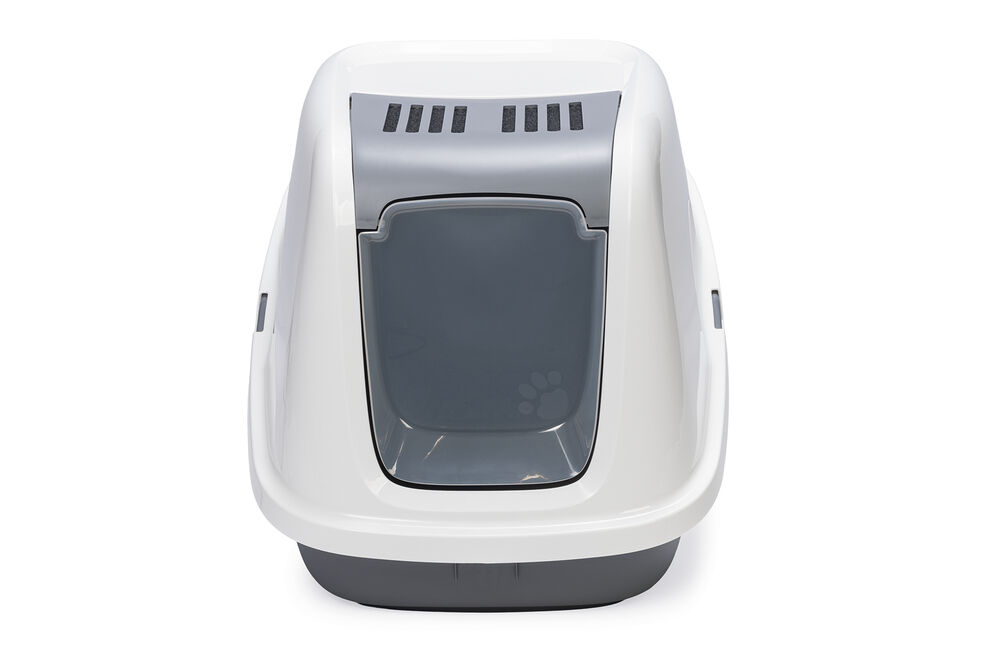 Beeztees Kapalı Büyük Kedi Tuvaleti, Koku Filtreli, Gri Beyaz, 75,5x56x55,5cm