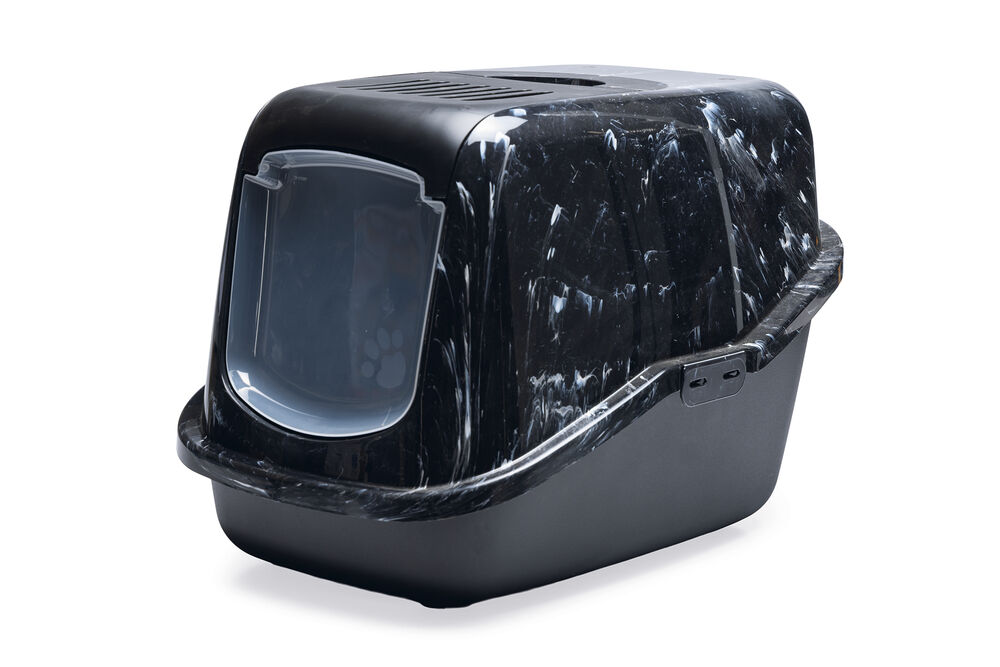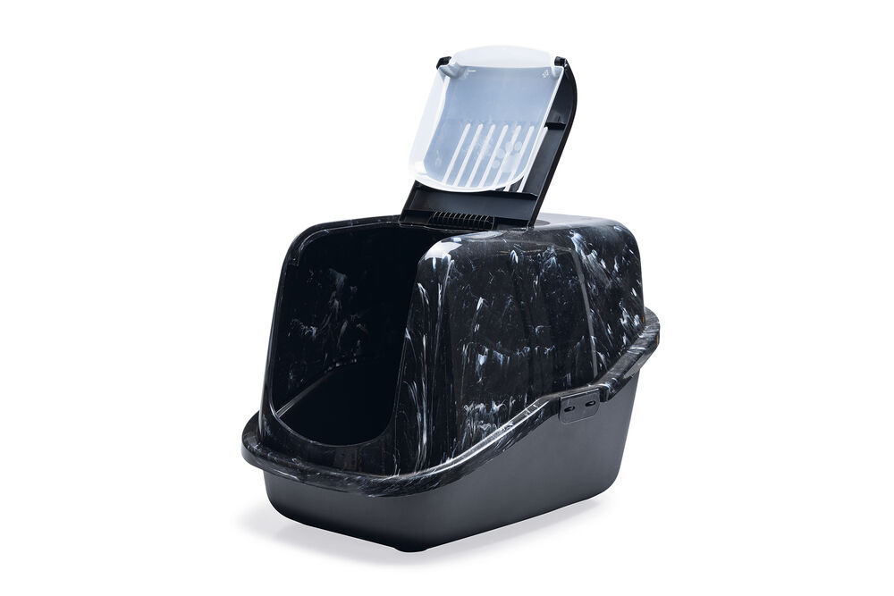 Beeztees Kapalı Kedi Tuvaleti, Koku Filtreli, Siyah Mermer Antrasit, 56x39x39cm