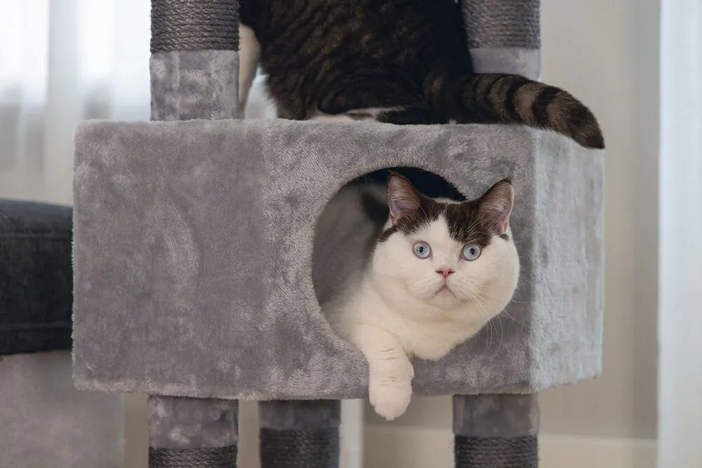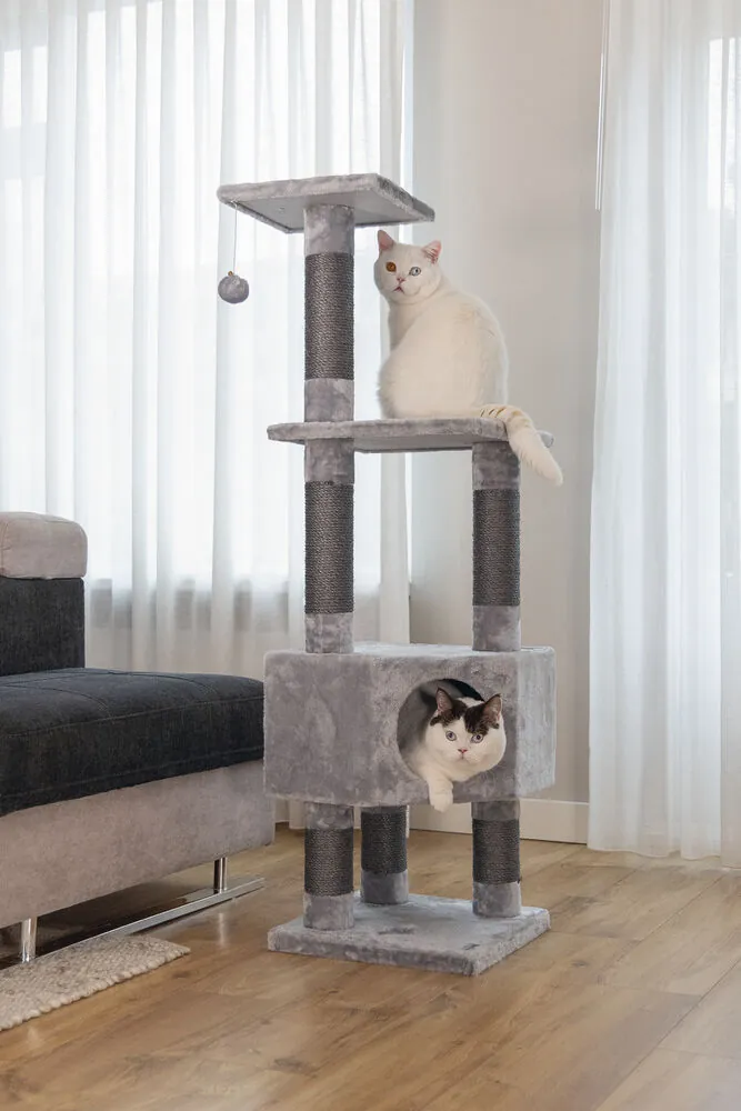 Beeztees Kedi Köşe Tırmalama ve Oyun Evi, Gri, 40x40x135cm