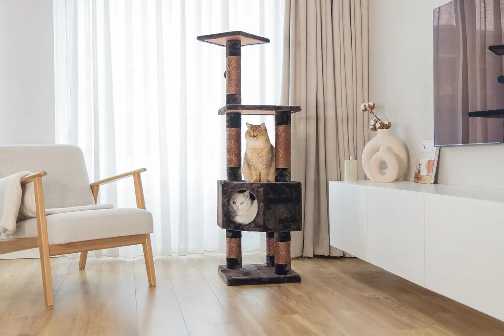 Beeztees Kedi Köşe Tırmalama ve Oyun Evi, Kahverengi, 40x40x135cm