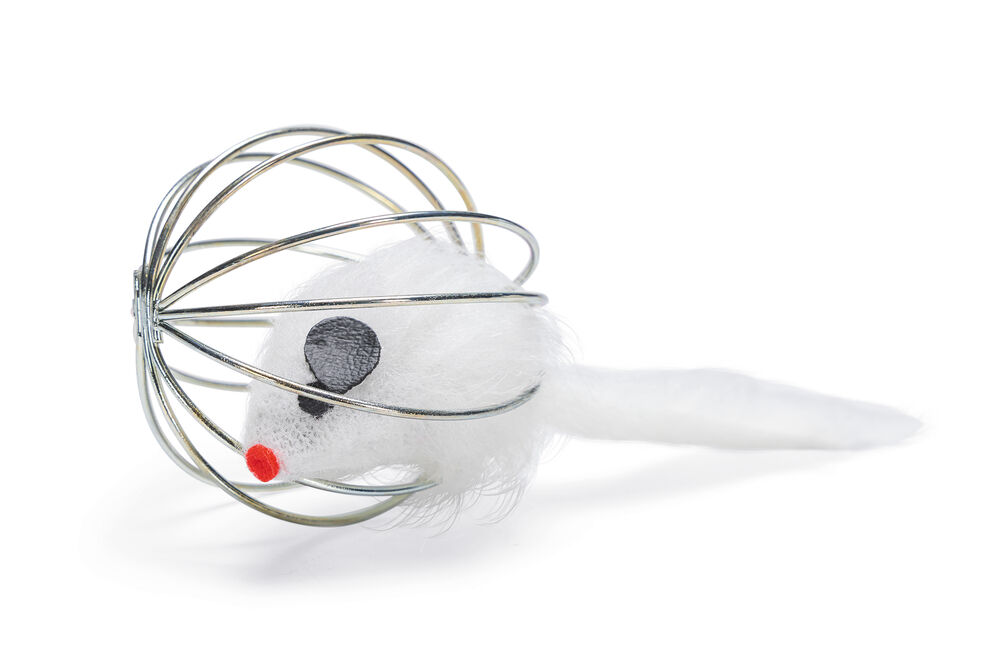 Beeztees Kedi Oyuncağı, Tel Top İçerisinde Pleuş Fare, Çeşitli Renklerde, 5,5cm