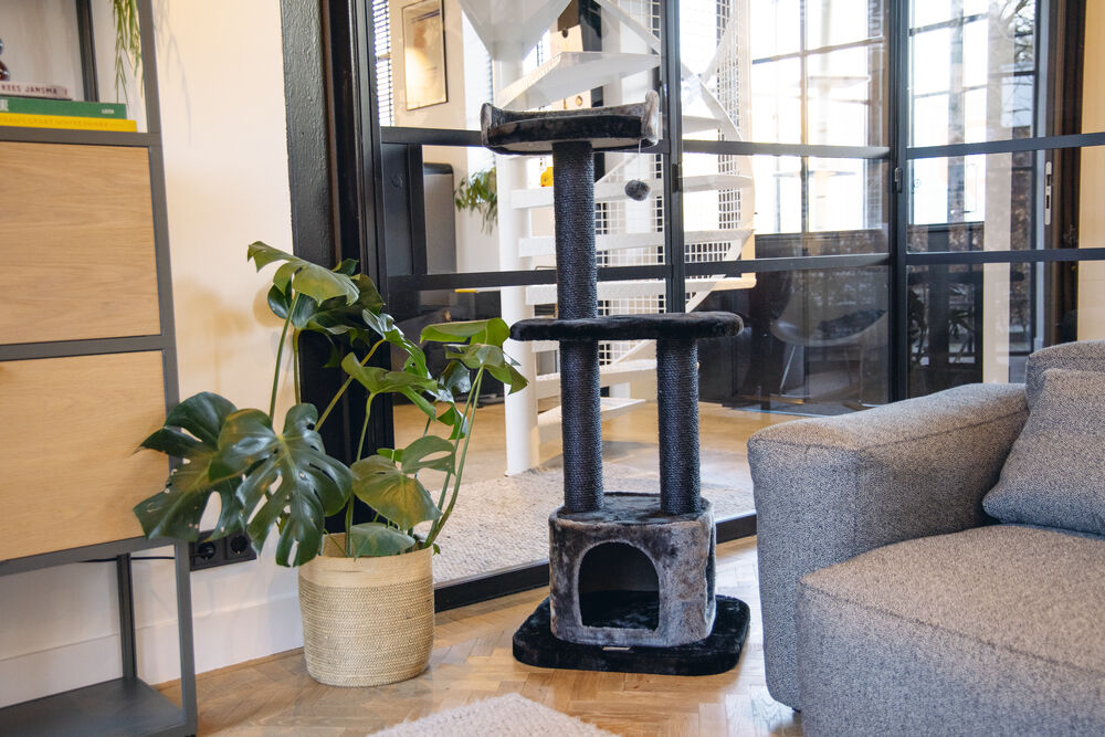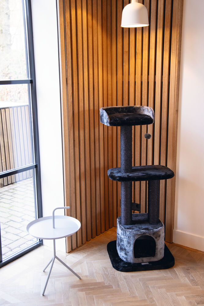 Beeztees Kedi Tırmalama ve Oyun Evi, Siyah/Gri, 50x50x120cm