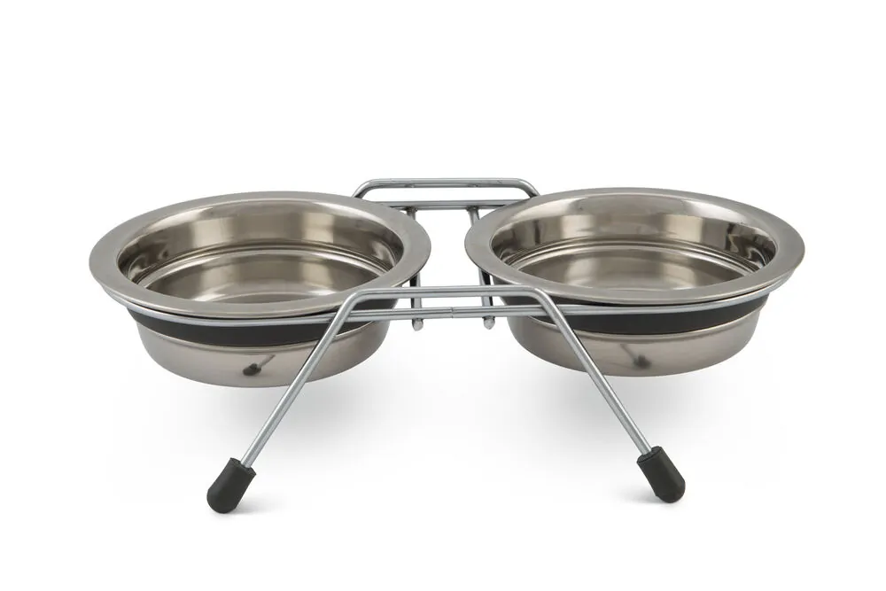 Beeztees Köpek İkili Mama ve Su Kabı, Paslanmaz Çelik, Sessiz&Kaymaz, 11cm, 2x220ml