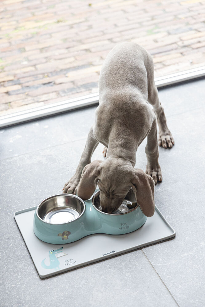 Beeztees Köpek İkili Mama ve Su Kabı, Paslanmaz Çelik, Turkuaz, 27x14cm, 2x160ml