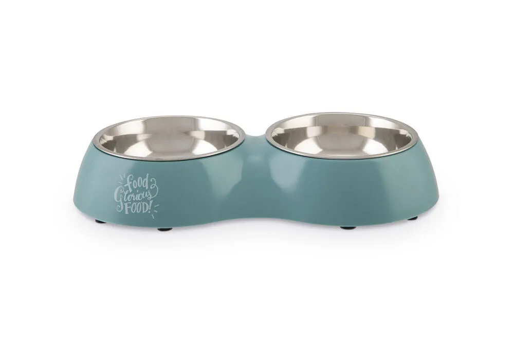 Beeztees Köpek İkili Mama ve Su Kabı, Paslanmaz Çelik, Turkuaz, 34x17,5cm, 2x350ml