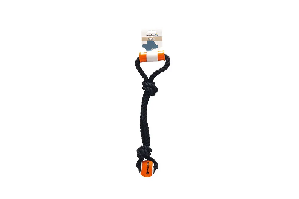 Beeztees Köpek Oyuncağı, Diş İpi Ucunda Tenis Topu, TPR Tutamaçlı, Siyah, 50x13,5x6,3cm