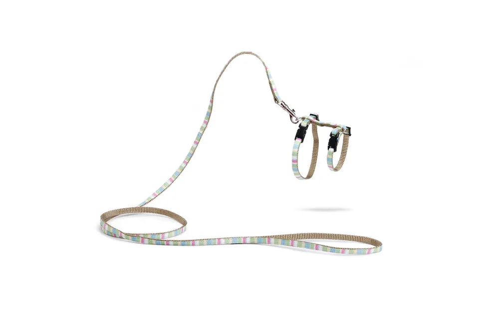 Beeztees DBL Kedi Göğüs Tasması ve Gezdirme Kayışı, 130cm, Pudra Pembe, 27-45cm