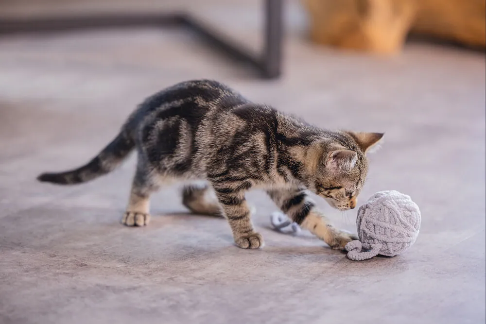 Beeztees Yavru Kedi Oyuncağı, Kuyruklu Yün Top, 6,5cm, 35cm kuyruk