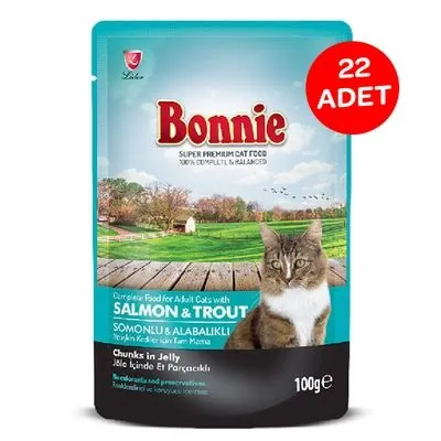Bonnie Pouch Jelly Somonlu ve Alabalıklı Konserve ile kedinize sağlıklı ve lezzetli öğünler sunun!