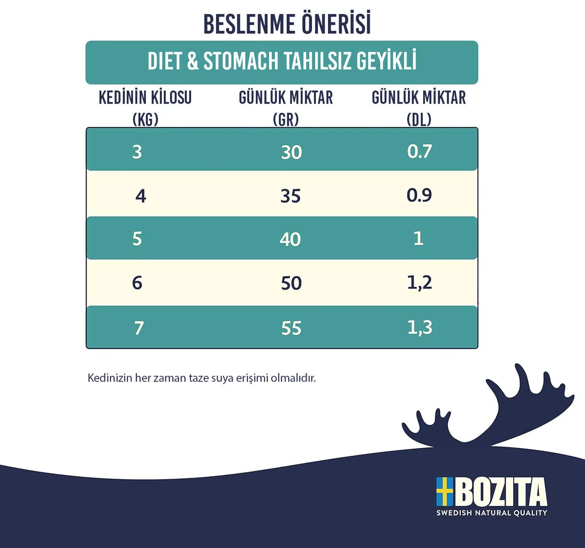Bozita Diet & Stomach Tahılsız Geyikli Kedi Maması ile kedinizin hem lezzetten hem de sağlıklı bir sindirimden ödün vermediğinden emin olun. Hemen sipariş verin, kedinizin mutluluğunu ve sağlığını destekleyin!