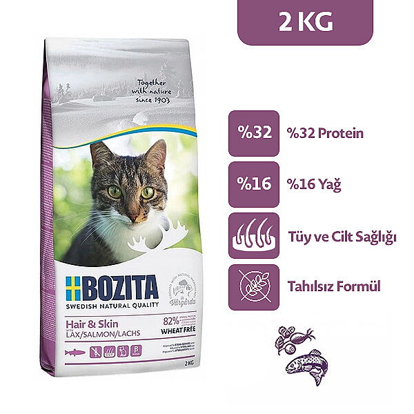 Bozita Hair Skin Tüy Sağlığı Destekleyici Tahılsız Somonlu Kedi Maması 2 Kg