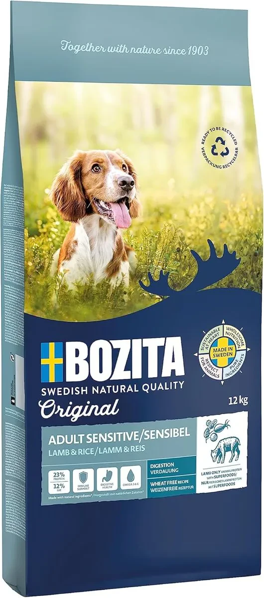 Bozita Original Adult Sensitive Digestion Kuzu Etli Köpek Maması ile köpeğinizin sindirim sistemini koruyarak sağlıklı ve keyifli öğünler sunun. Şimdi sipariş verin, hassas dostunuzun konforunu artırın!