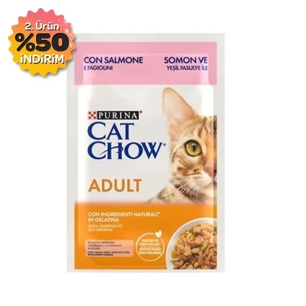 Cat Chow Pouch Jöle İçinde Somonlu ve Yeşil Fasulyeli Yetişkin Kedi Konservesi 85gr