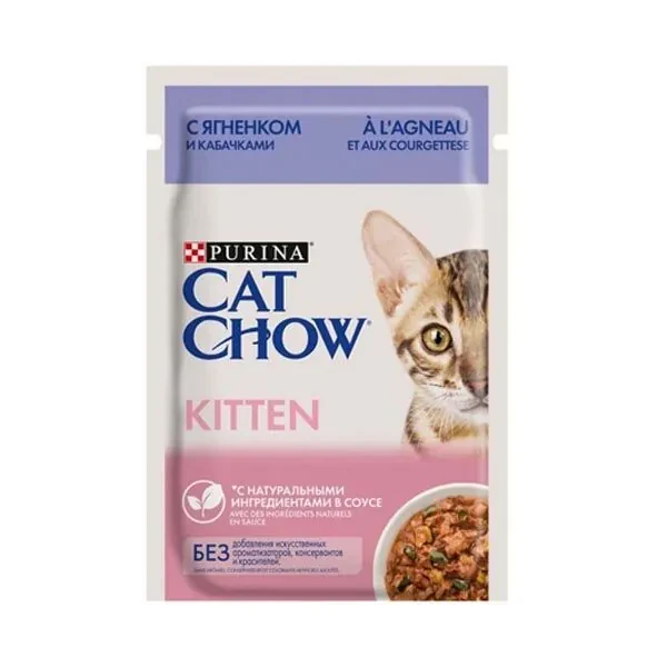 Cat Chow Pouch Sos İçinde Kuzu Etli ve Kabaklı Yavru Kedi Konservesi 85gr