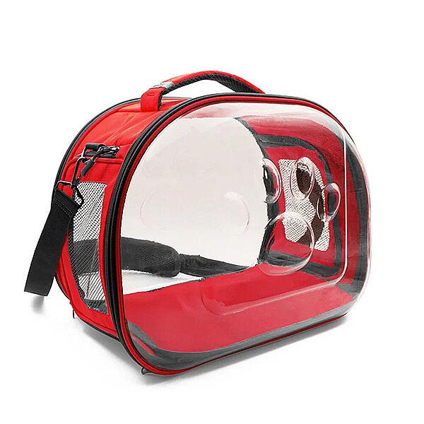 Cattie Panoramik Panoramik Şeffaf Kedi Taşıma Çantası 30x40x35cm - Kırmızı