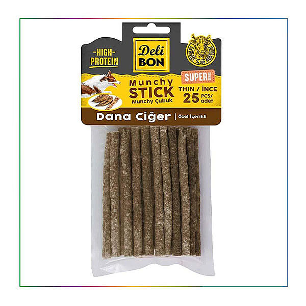 Delibon Dana Ciğer Munchy Çubuk Doğal Köpek Çiğneme Ödülü İnce 25 Adet
