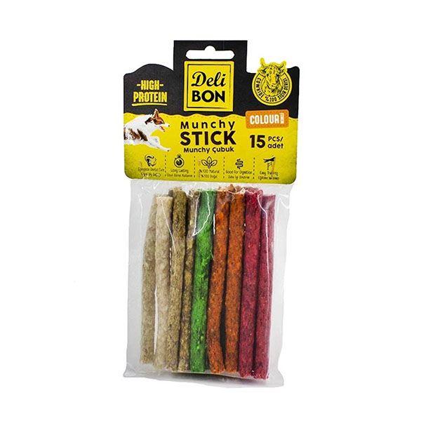 Delibon Deri Munchy Çubuk Orta Boy 15'li Paket Karışık Renk Kalınx15Ad.
