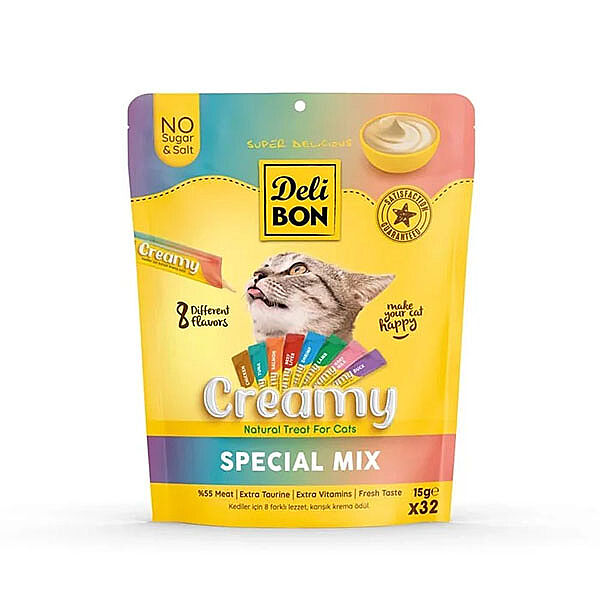 Delibon Krema Karışık Sıvı Kedi Ödülü 15 g x 32 Adet ile Lezzetli ve Pratik Ödüllendirme