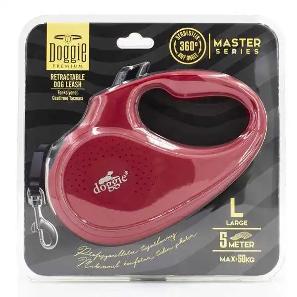 Doggie Master Serisi Otomatik Köpek Gezdirme Tasması Large Kırmızı