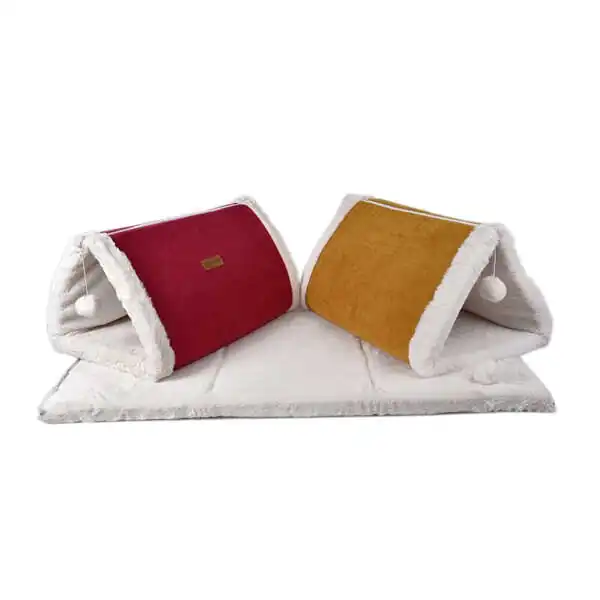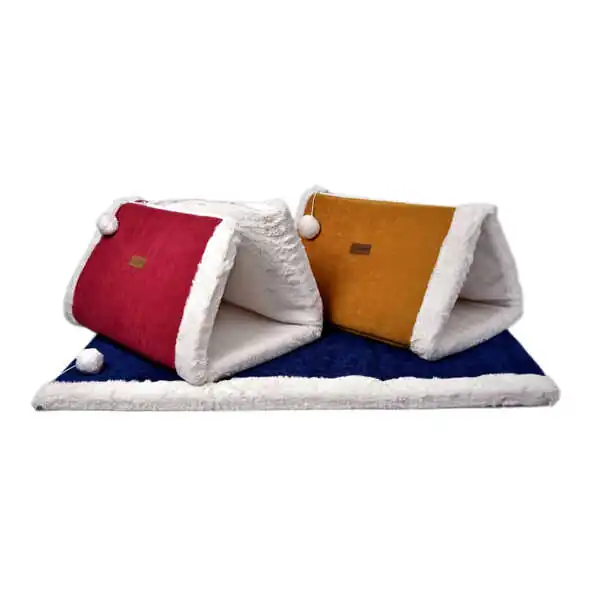 Kedi Oyun Tüneli ürünü iç kısmında çok kaliteli yumuşacık peluş, dış kısmında ise kadife kumaş kullanılmıştır. Ürünümüzün ana gövdesinin içi tabaka süngerdir.