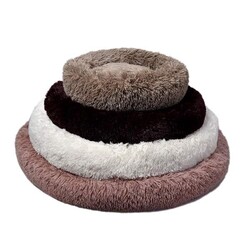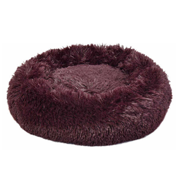 Dubex Ponchik Peluş Yuvarlak Kedi Köpek Yatağı Bordo L
