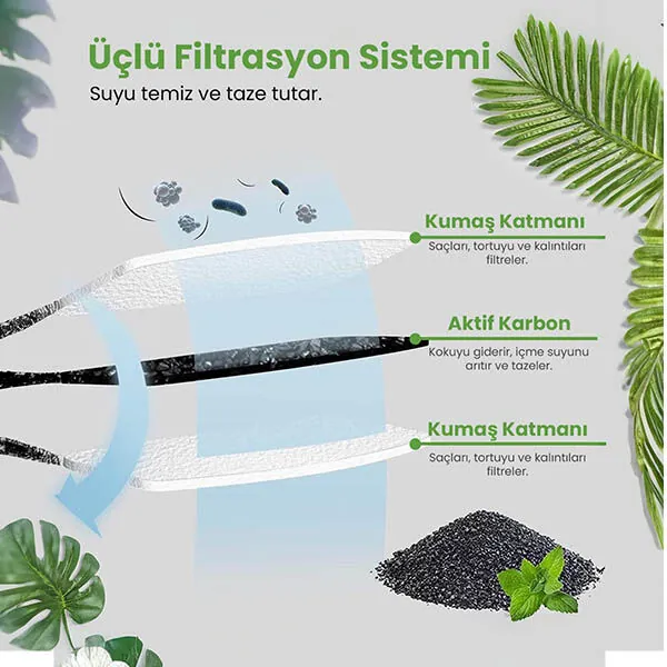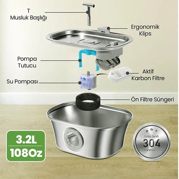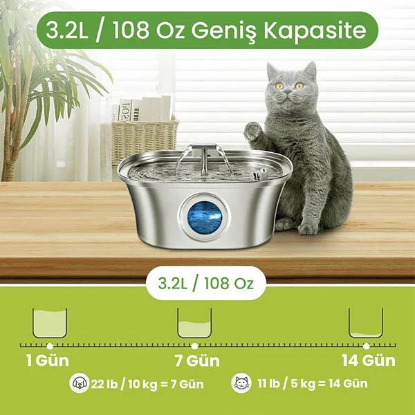Electron Çift Çeşmeli Paslanmaz Çelik Kedi ve Köpekler İçin Otomatik Su Pınarı 3.2 L
