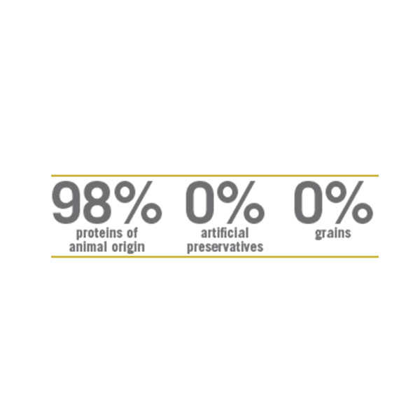 BİLEŞİMİ: Taze kemiksiz kuzu eti (26%), kurutulmuş kuzu eti (25%), patatesler, kurutulmuş tüm yumurtalar, Taze ringa balığı, kurutulmuş ringa balığı eti, hayvansal yağ, balık yağı, bezelye bitkisel lif, kurutulmuş havuçlar, kurutulmuş şifalı bitki unu, inulin, fruktooligosakkarid, mannan‐oligosakkaritler, yaban mersini