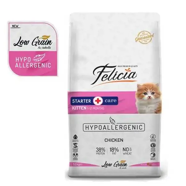 Felicia yavru kedi maması, sağlıklı büyümesini ve metabolizmanın ideal çalışmasını destekleyecek şekilde uzun bir ömür sürebilmesi için protein ve yağ oranı dengelenerek formülize edilmiştir.