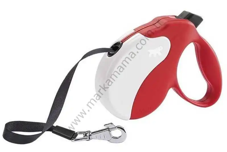 FerPlast Amigo Mini Kırmızı Beyaz Otomatik Şerit Köpek Gezdirme Tasması 12 KG 3 Metre