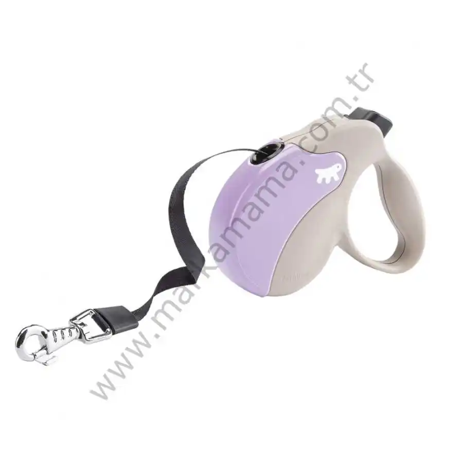 FerPlast Amigo Small Lila-Bej Otomatik Şerit Köpek Gezdirme Tasması 15 KG 5 Metre