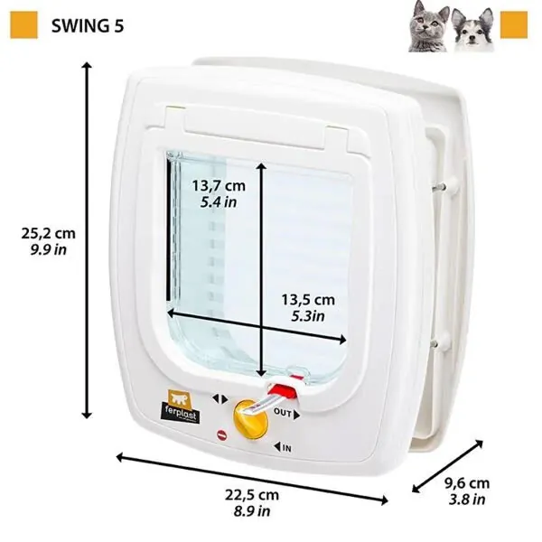 Ferplast Swing 5 Beyaz Kedi Kapısı – 4 Yönlü Kilit Sistemi – Ahşap, Metal, Cam ve Duvarlara Uyumlu – 13,5×13, cm