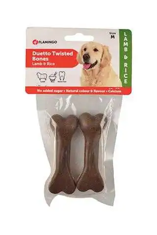 Flamingo Duetto Twist Kuzu ve Pirinçli Köpek Ödülü Kemik 9,5 cm