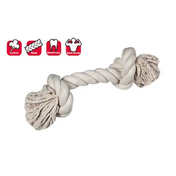 Düğümlü ipler köpeklerin en sevdiği oyuncaklardan birisidir. Sahipleriyle eğlenceli vakit geçirmelerini sağlar. Dayanıklıdır. Pamuktan imal edilmiştir. M boy. 30 cm. Beyaz.