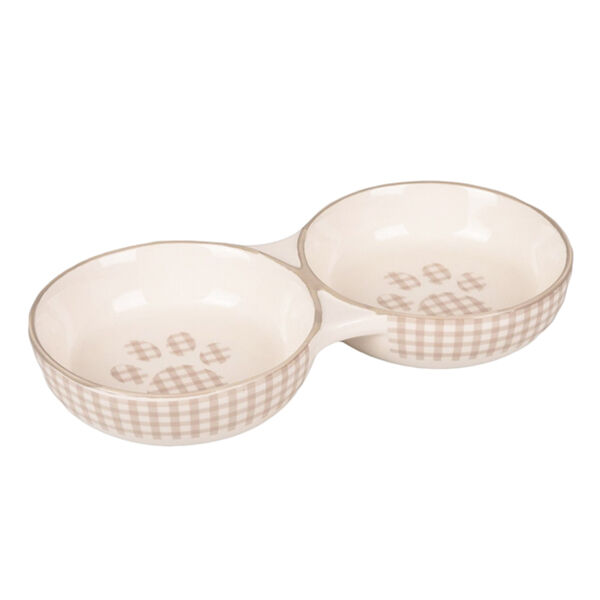 Kedi mama kabı, kediler için, seramikten yapılmış, mama ve su kabı olarak kullanılabilen, ikili seramik mama kabı seti.