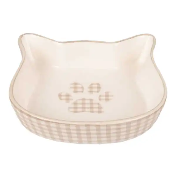 Kedi mama kabı, kediler için, seramikten yapılmış, mama ve su kabı olarak kullanılabilen, seramik mama kabı.