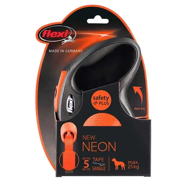 Flexi Neon Otomatik Şerit Köpek Tasması 25 KG - 5M Medium Turuncu, orta ve büyük ırk köpek sahipleri için güvenli ve kullanışlı bir seçenektir. Yüksek görünürlüğü, dayanıklılığı ve kullanım kolaylığı ile köpeğinizle yapılan yürüyüşleri daha güvenli ve keyifli hale getirir. Köpeğinizin sağlığını ve mutluluğunu düşünerek ona bu özel tasmayı sunabilirsiniz. Artık köpeğinizle geçirdiğiniz zaman daha özel ve rahat olacak.
