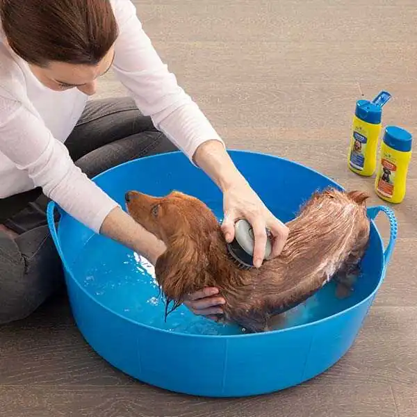 Köpek ve kedi banyo fırçası, haznesine şampuan doldurularak kullanılan, tüylerin yıkanmasını kolaylaştıran, masaj ve yıkama fırçasıdır.