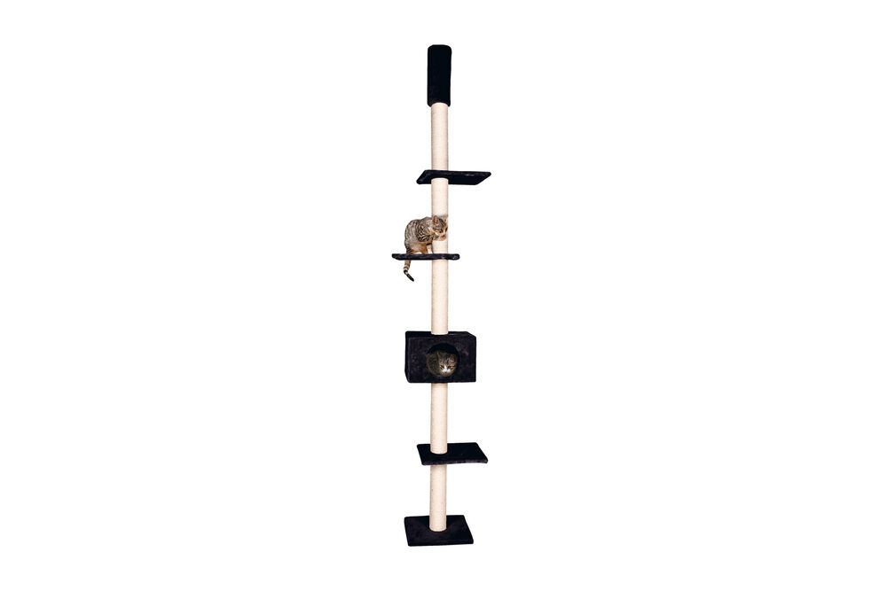 KARLIE TIRMALAMA AĞACI SİYAH 35X35X263. Küçük taban alanı sayesinde yerden tasarruf eder.Zeminden tavana sıkıştırılması, güvenli bir duruş sağlar .Yüksekliği ayarlanabilir .Sıcak ve yumuşak peluş bir mağara, kedinize ekstra dinlenme alanı sunar. Peluş kaplı platformlar ve tırnak bakımı için sisal direkler mevcuttur.