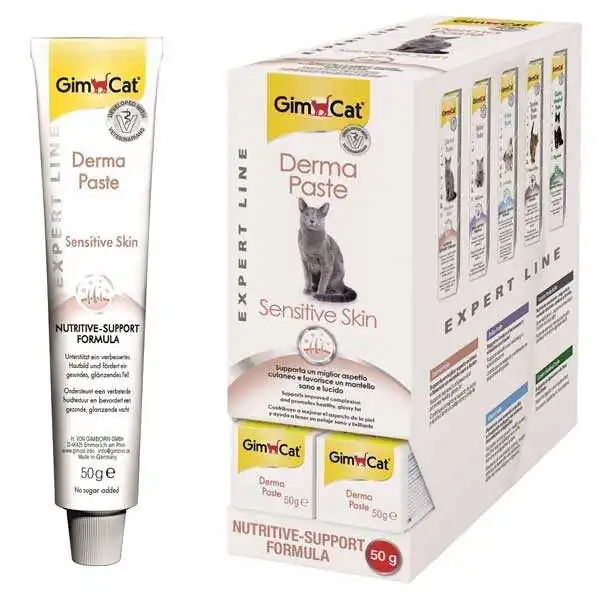GimCat Derma Macun, iyileştirilmiş deriyi destekleyen; sağlıklı ve parlak tüylerin oluşumunu sağlayan besin destekleyici bir formül içerir: