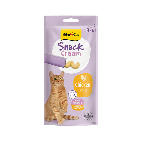 Lezzetli tavuk aromasıyla hazırlanan GimCat Snack Cream Tavuklu, kediniz için tamamlayıcı ödül mamasıdır. Kremsi ve yumuşak yapısı sayesinde doğrudan tüpten verilebilir ya da kuru mamanın üzerine eklenerek iştah artırıcı olarak kullanılabilir.
