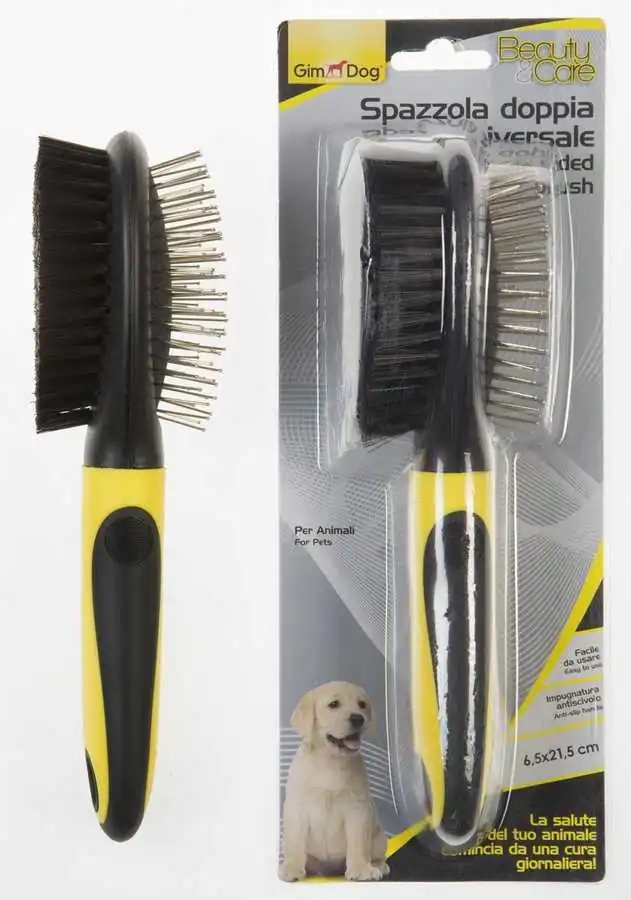Gimdog Aks Çift Taraflı Köpek Fırçası 57508Bir tarafı İnce tel Kıllı, diğer tarafı Plastik Kıllı bu Fırça ile köpeğinizi haftada bir taramanız onu hem fazla ve kirli Tüylerden temizlemenizi hemde postu üzerindeki kan dolaşımını hızlandırarak daha sağlıklı bir hale getirmenizi sağlayacaktır.