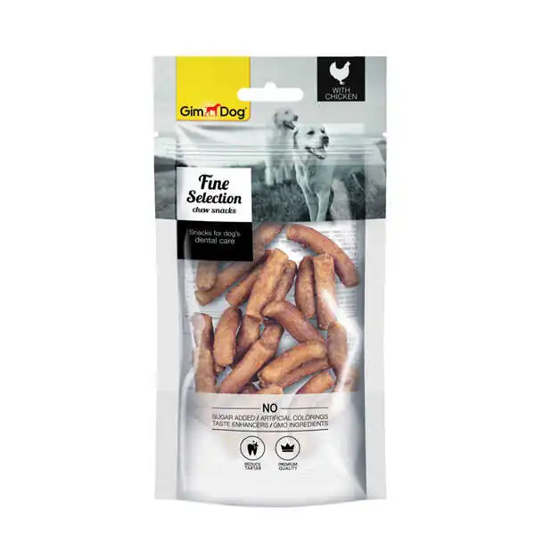 GimDog Fine Selection Chicken-Bites Tavuklu Köpek Ödülü, üstün kaliteli içerikleri ile tartarın azaltılmasına yardımcı olarak mükemmel bir diş bakımı sağlar. Aynı zamanda köpeğiniz için harika lezzette, günün her saati verebileceğiniz atıştırmalık bir ödüldür. Herhangi bir ilave şeker, yapay renklendirici, yapay tatlandırıcı veya GDO içermez.