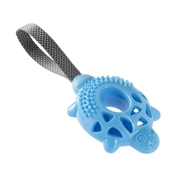 Gimdog Kaplumbağa Şeklinde Çekiştirmeli Köpek Ödül Oyuncağı, köpeklerin oyun ve çiğneme ihtiyaçlarını karşılamak için özel olarak tasarlanmış dayanıklı bir oyuncaktır. TPR kauçuk malzemeden üretilmiş olması sayesinde uzun süreli kullanım sağlar. Köpeklerin hem çiğneme içgüdüsünü destekler hem de diş ve ağız sağlığını korumaya yardımcı olur. Çekiştirme oyunu sırasında dostunuzun enerjisini atmasına olanak tanırken, aranızdaki bağı da güçlendirir.