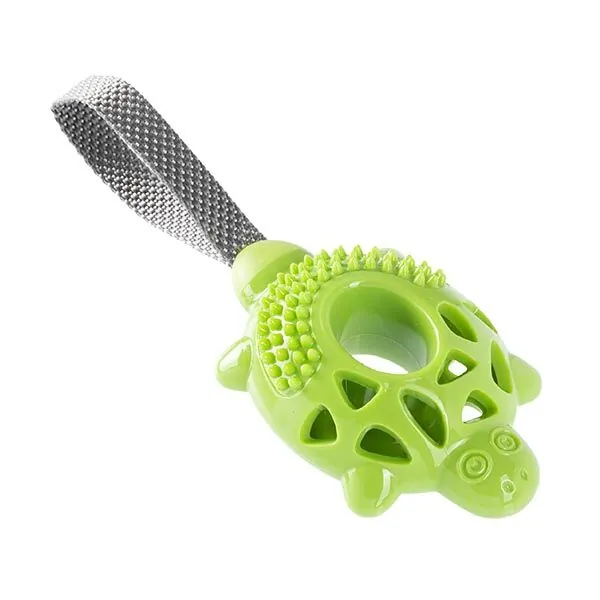 Gimdog Kaplumbağa Şeklinde Çekiştirmeli Köpek Ödül Oyuncağı, köpeklerin oyun ve çiğneme ihtiyaçlarını karşılamak için özel olarak tasarlanmış dayanıklı bir oyuncaktır. TPR kauçuk malzemeden üretilmiş olması sayesinde uzun süreli kullanım sağlar. Köpeklerin hem çiğneme içgüdüsünü destekler hem de diş ve ağız sağlığını korumaya yardımcı olur. Çekiştirme oyunu sırasında dostunuzun enerjisini atmasına olanak tanırken, aranızdaki bağı da güçlendirir.