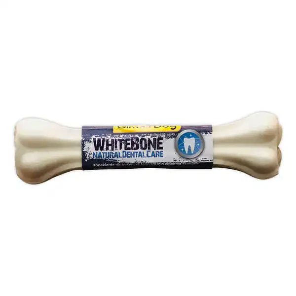 Köpeklerin kemirme ihtiyaçlarını gidermeleri için imal edilmiş ham sığır derisi Gimdog köpek kemikleri. Lezzet arttırıcı, koruyucu yan maddeler içermez. % 90 protein, % 2 yağ değerlerine sahiptir. Diş ve çene gelişimine yardımcı olur. Ayrıca dişlerini temizlerken tartar ve plak oluşumunu önler.